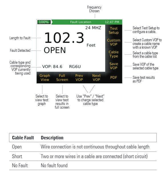 Every type of cable has different VOP value, and test frequency. We have all the most common setting values in the device, so all you have to do is click and choose the type of cable and the right value set. There is no need for memorizing the or looking up for numbers, let the device help you and save your time.