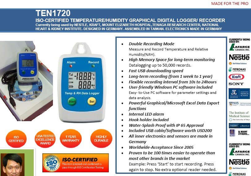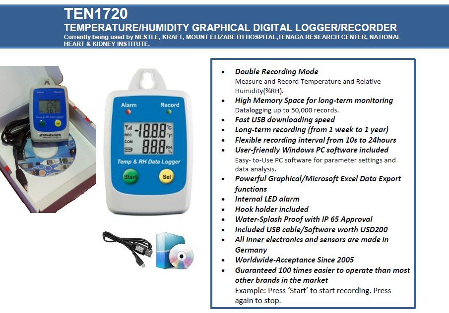 TEN1720-TEMPERATURE/ HUMIDITY(RH) GRAPHICAL DIGITAL LOGGER/RECORDER