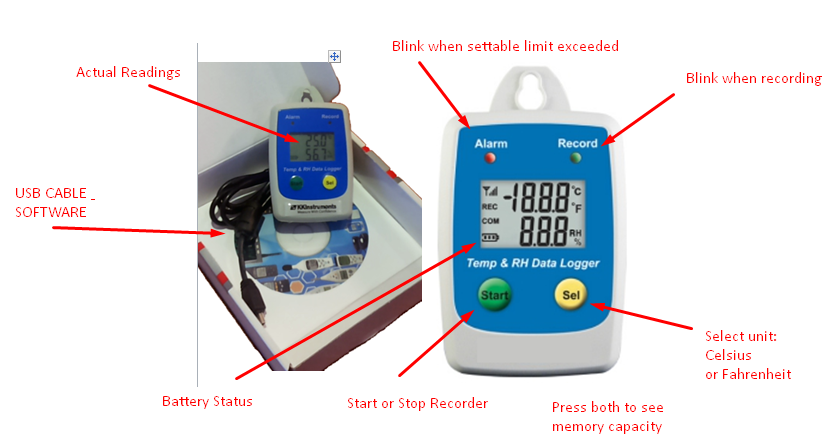 Measure and Record Temperature and Relative Humidity(%RH). - High Memory Space for long-term monitoring
