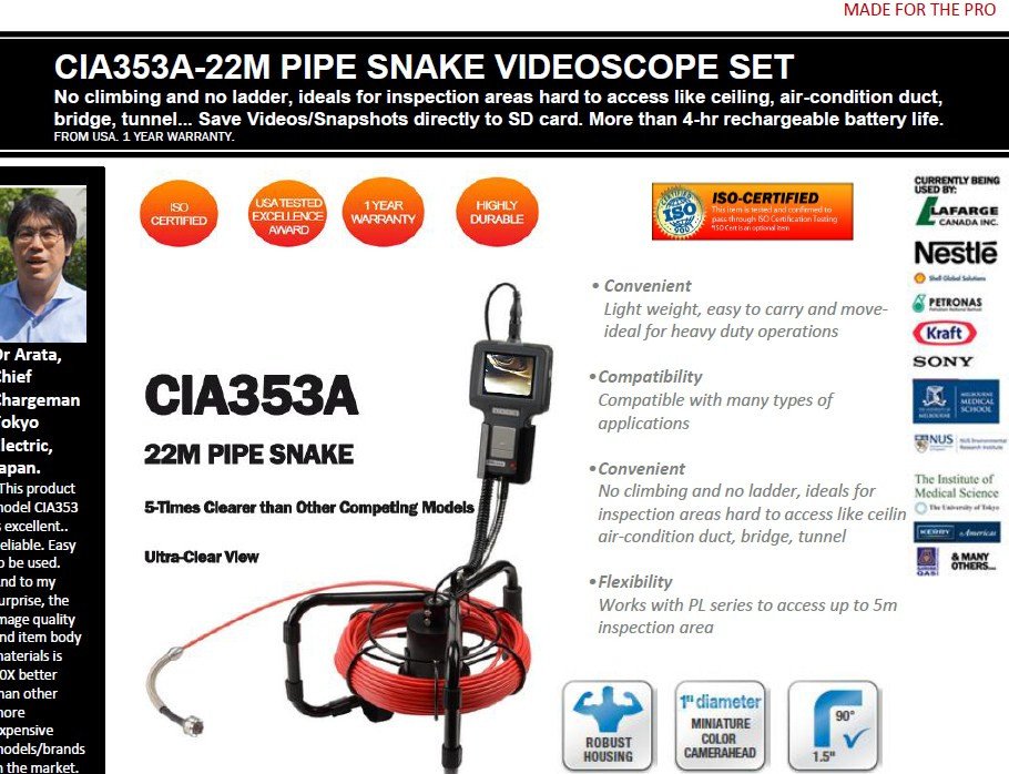 You are here: Home Products Inspection Cameras/Borescopes/VideoScopes/FiberScopes CIA353A - 22M PIPE SNAKE
