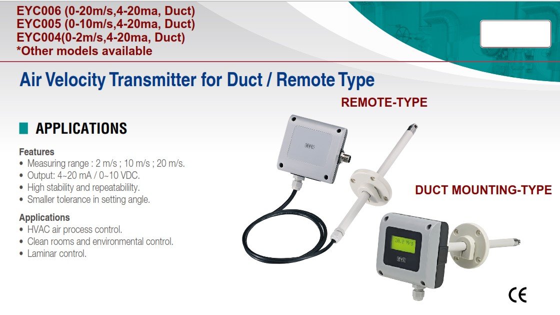 EYC002 0-10M/S REMOTE AIR VELOCITY TRANSMITTER W LCD DISPLAY (5M)