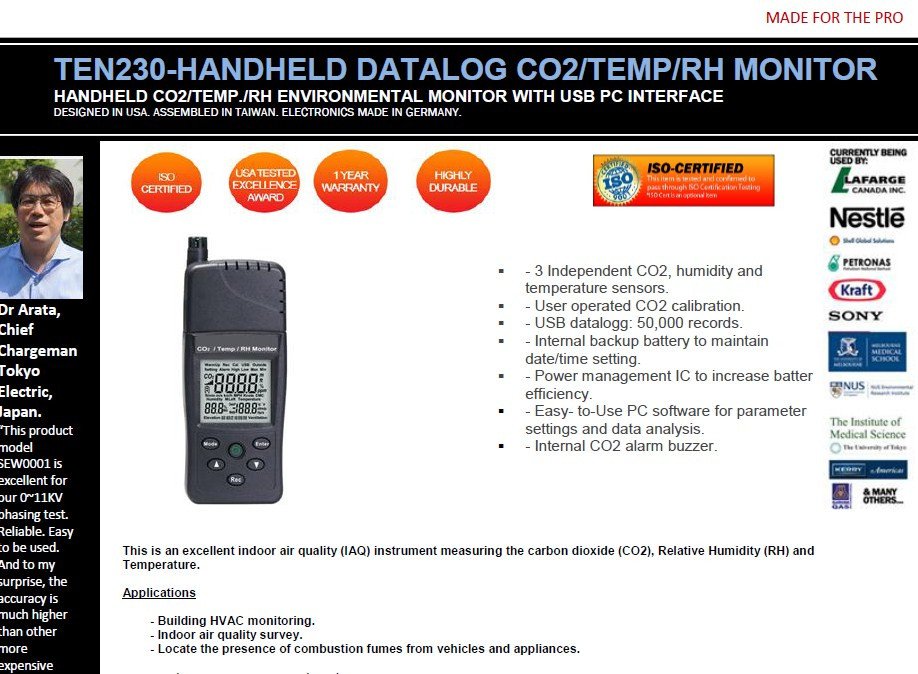TEN230-HANDHELD CO2/TEMP./RH ENVIRONMENTAL MONITOR (Carbon dioxide)