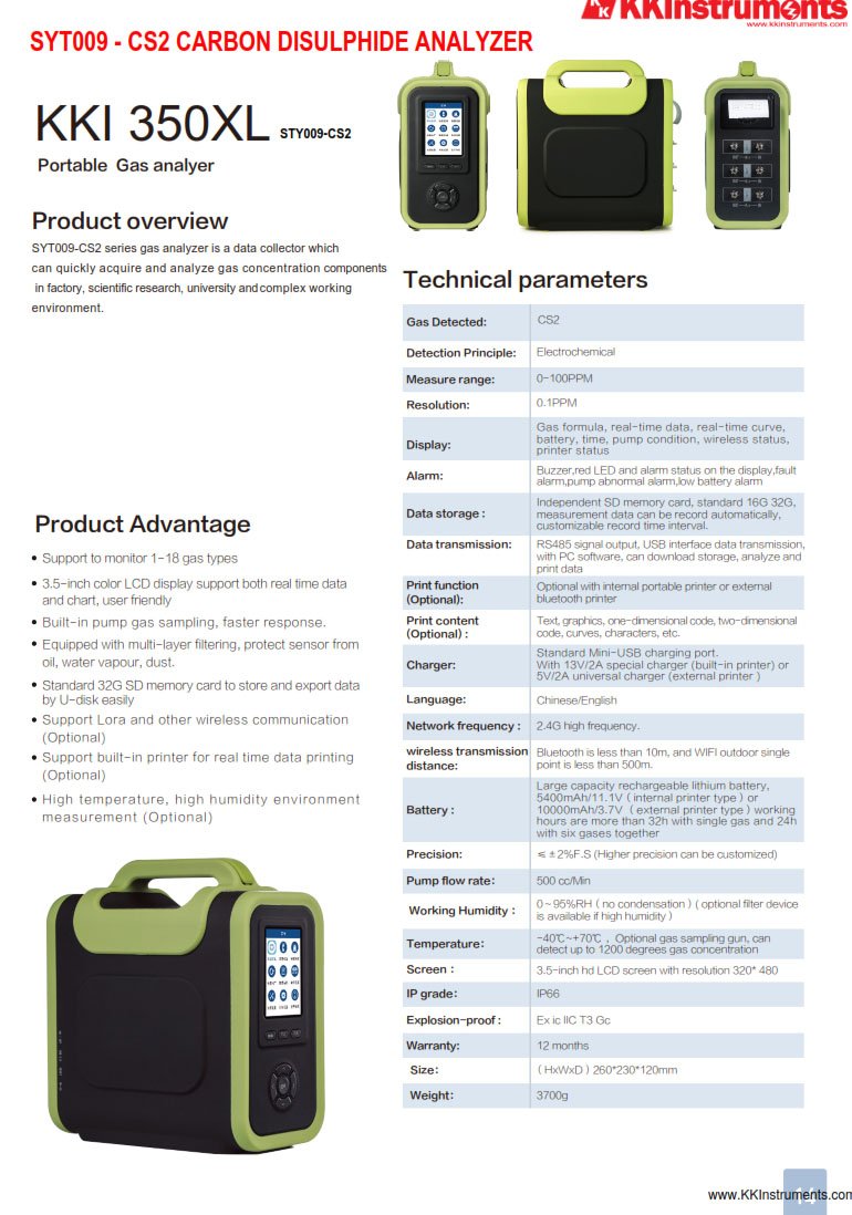 You are here: Home Products Gas detectors/analysers/recorders Combustion/Flue gas analyser SYT009-CS2-KKI 350XL PORTABLE CS2 CARBON DISULPHIDE ANALYZER / GAS ANALYSER