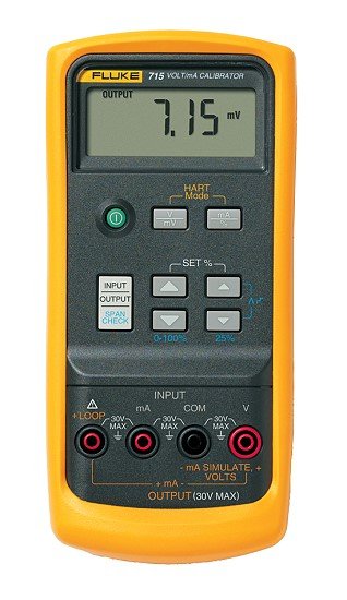 The Fluke 715 Volt/ mA Calibrator delivers outstanding performance, durability and reliability. Offered in a rugged, compact, lightweight, and easy to carry. With a push button interface similar to the multifunction Fluke 740 Series Documenting Process Calibrators, the Fluke 715 is easy to use. It is EMI tolerant, dust and splash resistant, and features a removable battery door for quick battery changes.