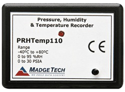 The PRHTemp110 is a miniature battery powered stand alone pressure, humidity and temperature data logger. The PRHTemp110 features a real-time clock module that extends the battery life to >10 years and allows for high speed downloads. This is an all-in-one compact, portable, easy to use device that will measure and record up to 13,107 measurements. The storage medium is non-volatile solid state memory, providing maximum data security even if the battery becomes discharged.