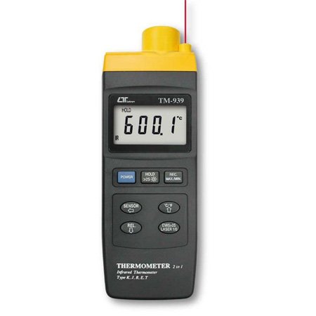 * 2 in 1, Infrared thermometer + Thermocouple ( Type K/J/T/E/R ) thermometer.