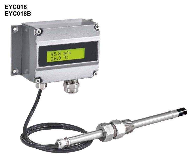 EYC018B T:-20C/+100C AIR VELOCITY: 0/60M/S INDUSTRIAL AIRFLOW TRANSMITTER W DISP (24DCV) Industrial High Accuracy Thermal Air Velocity Transmitter