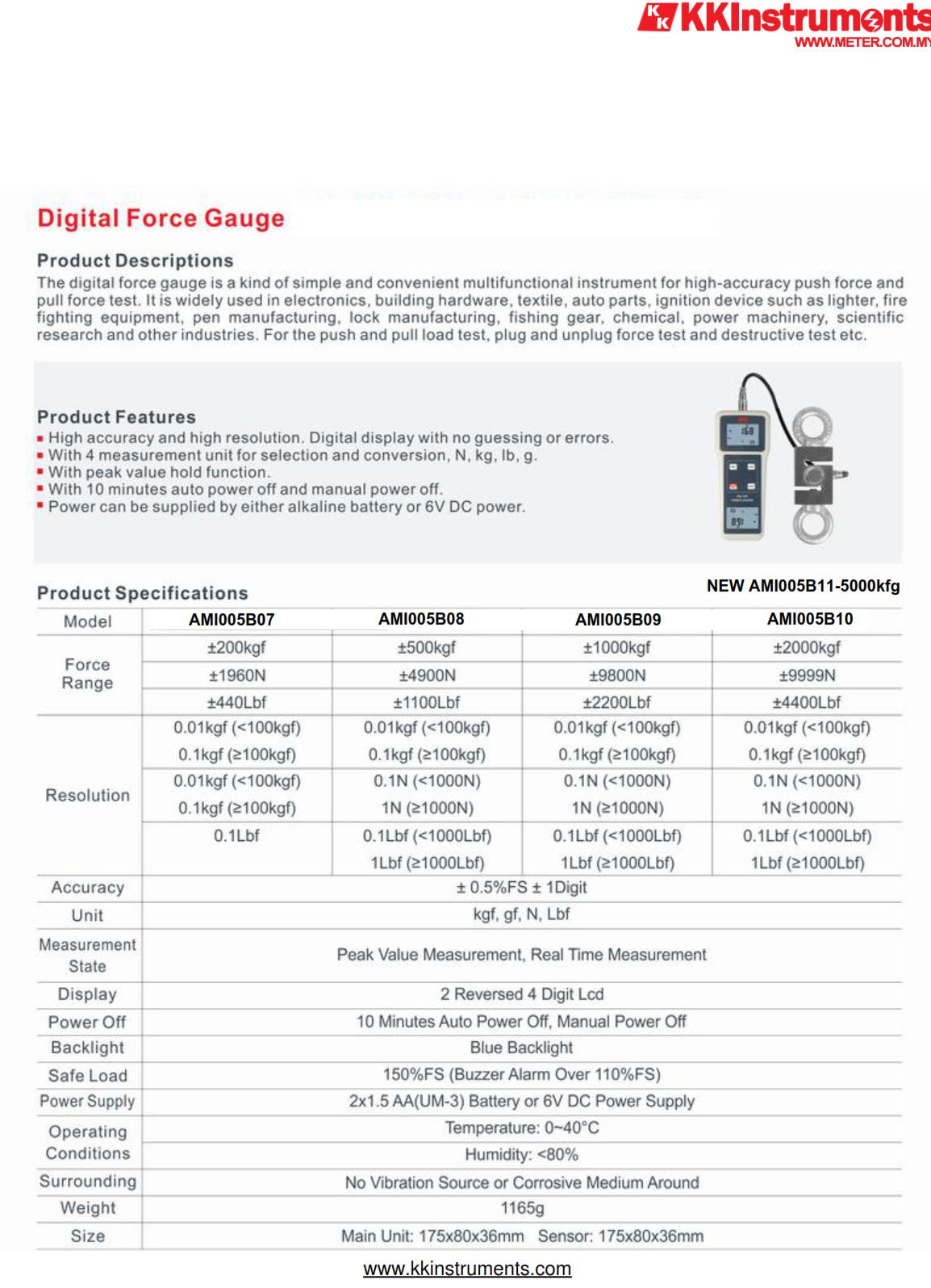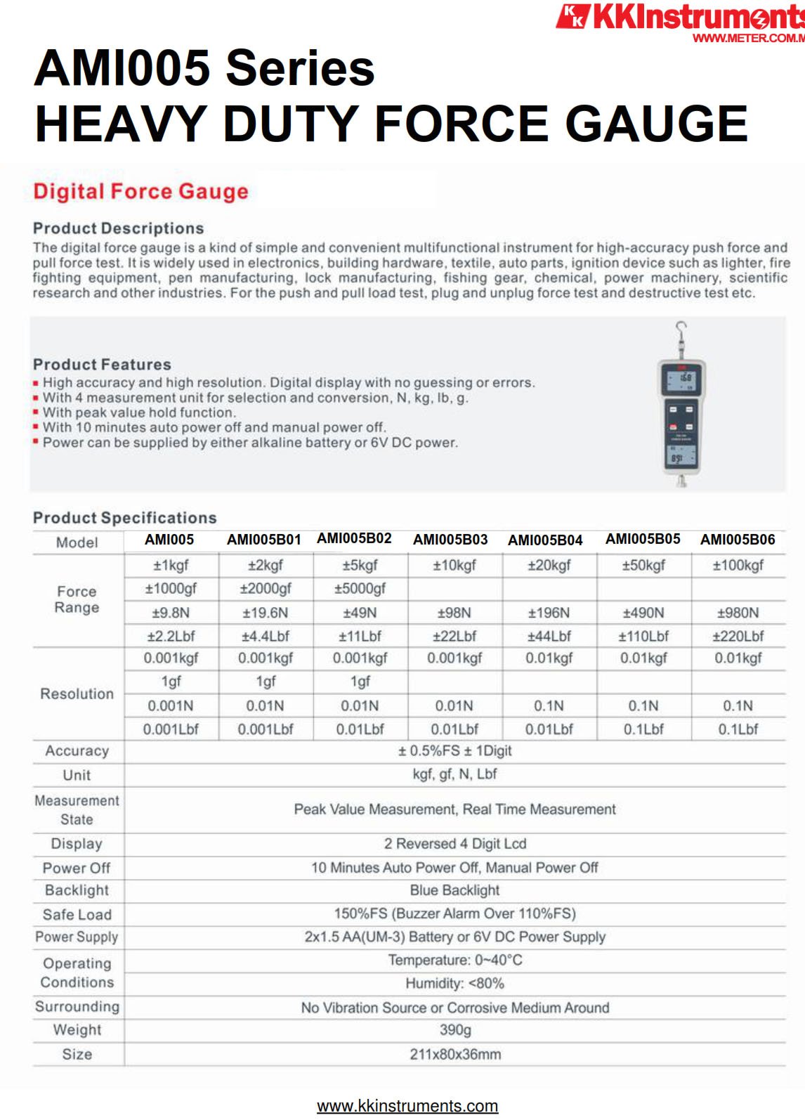 * With 4 measurement unit for selection and conversion, N, kg, lb, g.