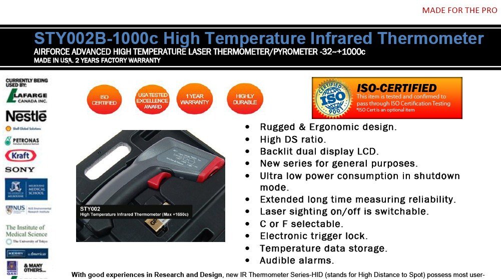 STY002B-AIRFORCE STY002B 1000c High Temperature Infrared Thermometer