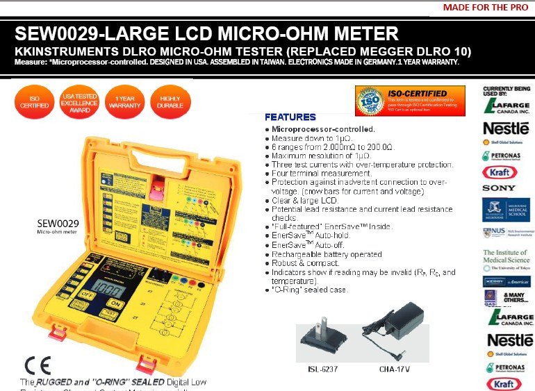 You are here: Home Products Milli-Ohm meter/Micro-Ohm meters SEW0029-KKINSTRUMENTS DLRO MICRO-OHM TESTER (REPLACED MEGGER DLRO 10)